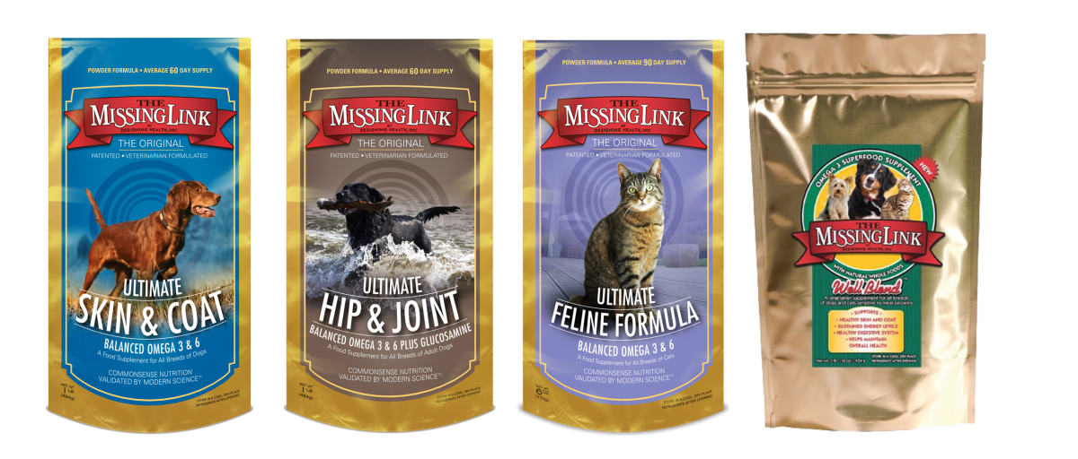 An all-in-one Omega 3 superfood supplement that targets the nutritional gap between what nature provides and what is available in processed pet foods. The Missing Link is vet formulated and made in a people food facility using a proprietary, patented cold-processing method that ensures the freshest delivery of precious Omega 3 fatty acids in combination with a broad spectrum of natural fibre, flax lignans and phyto (plant) nutrients.